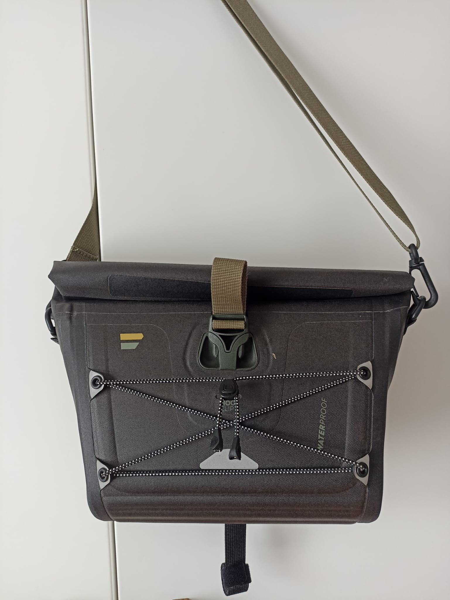 Ūdensizturīga. Paredzēta stiprināšanai pie velo stūres. Nokāpjot no velo var izmantot kā plecu somu (kamerai, dokumentiem utt). Pie stūres stiprinās ar klipšiem. Iekšpusē lielā kabata un mazāki nodalījumi. Ārpusē elastīgs stiprinājums, piemēram, vējjakai vai lietus jakai brauciena laikā. Soma cieta materiāla, kas saglabā formu, tā nesaplok. Stāvoklis izcils, soma piedzīvojusi vienu 30km braucienu.