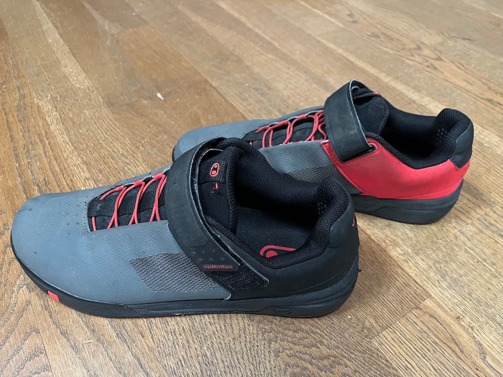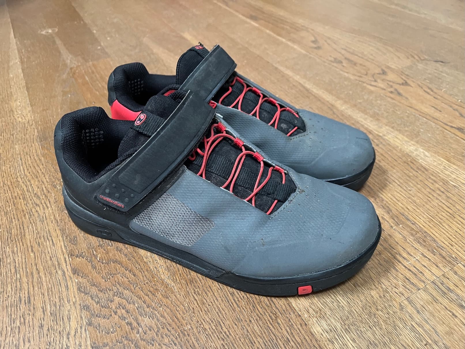 Vēl ir Crankbrothers apavi plakanajiem pedāļiem. 41. izmērs. Pedāļus mazliet redzējuši ir, bet nekas saplēsts nav, parasti pēc lietošanas žāvēti ar apavu žāvētāju. Kādu laiku pabraucu un sapratu, ka tomēr ir mazliet par šauru. Visdrīzāk labāk derēs 40. izmēra kājai, it īpaši, ja ir platāka pēda.