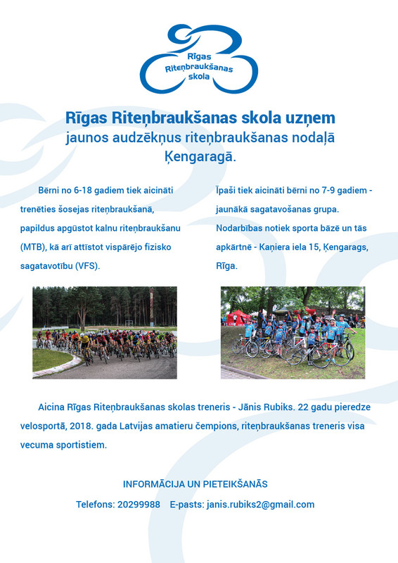 Aicina Rīgas Riteņbraukšanas skolas treneris: Jānis Rubiks (22 gadu pieredze velosportā, 2018. gada Latvijas amatieru čempions, riteņbraukšanas treneris visa vecuma sportistiem).