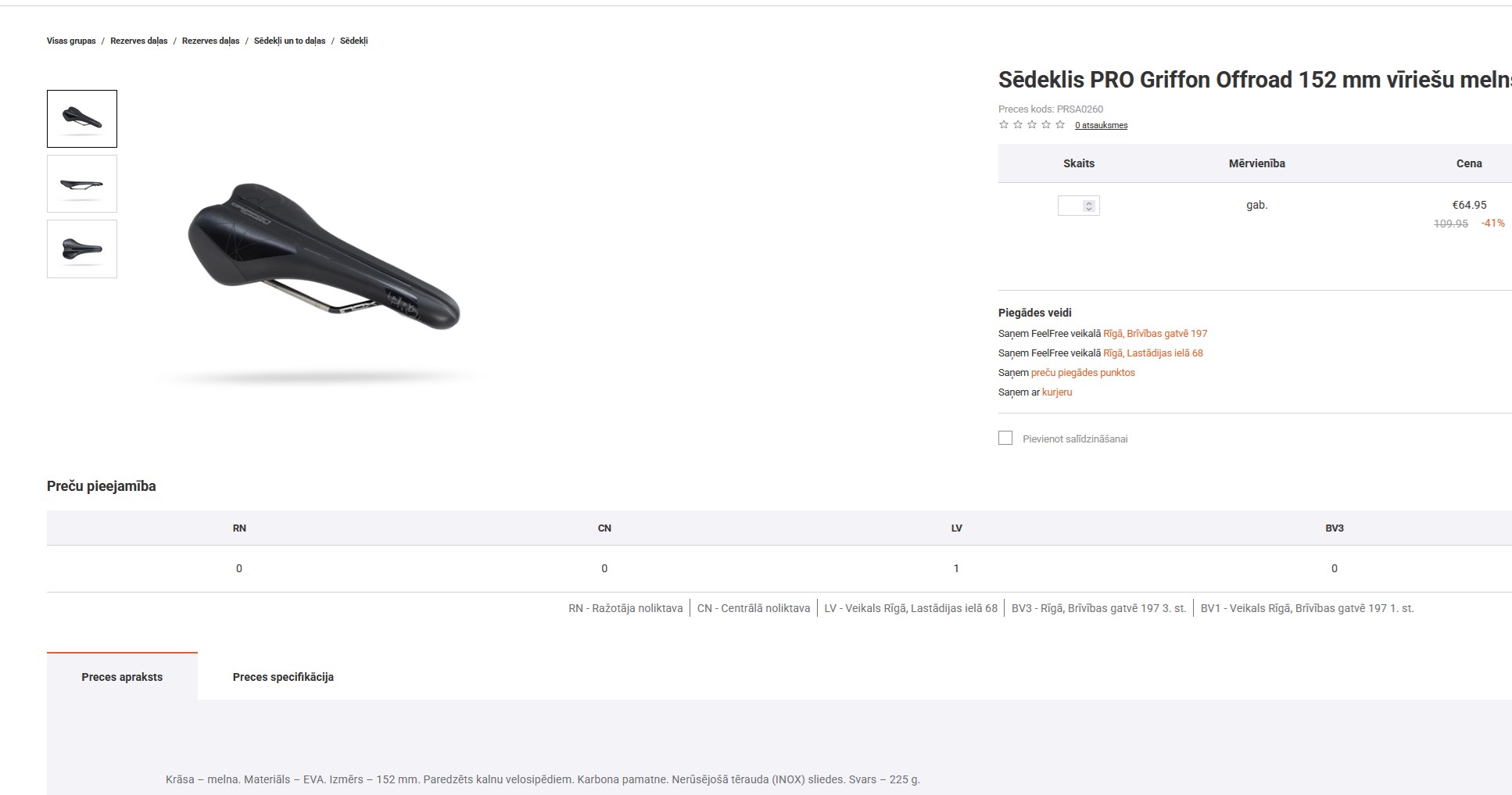Pārdodu jaunu MTB sēdekli Griffon, 152mm plats, n.tērauda sliedes, karbona pamatne. Svars 225g. - 50 €