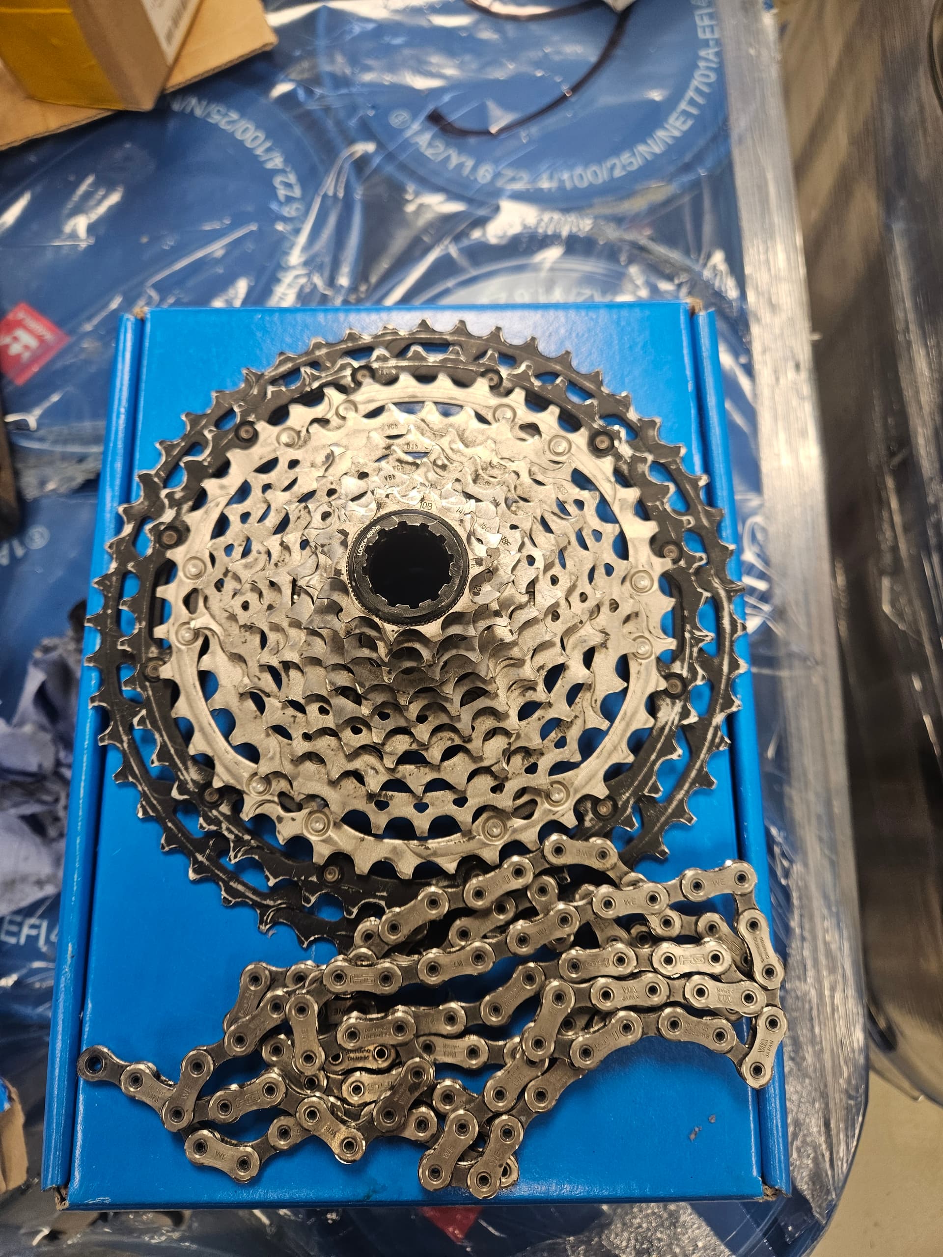 a Shimano XT CS-M8100 kasete un ķēde CN-M9100 -20 eur Sram klaņi- 15 eur Mazlietoti Shimano bremžu diski SM-RT10 180 un 160 MM- 5 eur Shimano Alivio pārslēdzējs -8 eur Shimano brīvrumba pa 3 eur 10s shimano videjās zvaigznes - 3 eur